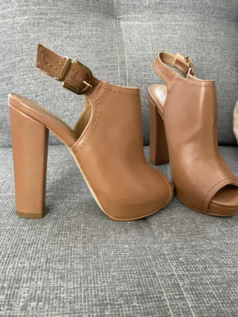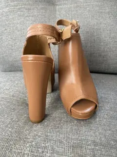 seminuevas (una sola puesta)En perfecto estado. Tacón 12cm con plataforma de 2cmCafé Talón descubiertoTalla 24 cm