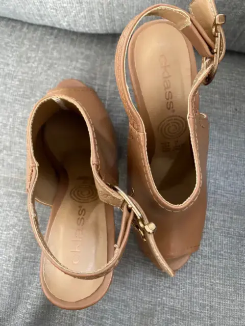 Suecos marca CKLASS de piel. seminuevas (una sola puesta)En perfecto estado. Tacón 12cm con plataforma de 2cmCafé Talón descubiertoTalla 24 cm