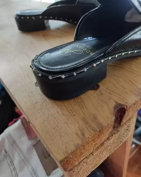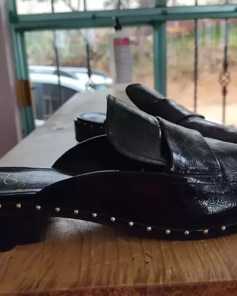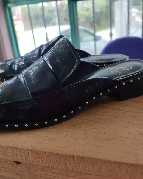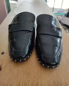 Zapatos nuevos de charol, por dentro muy suaves, se maltrataron por estar guardados se les cayó unos adornos de la parte de atrás se muestra en la foto