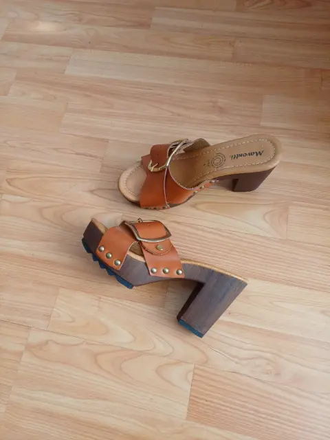 Zuecos. Color miel, tacón 10 cms .,cómodos y muy vistosos, con estilo